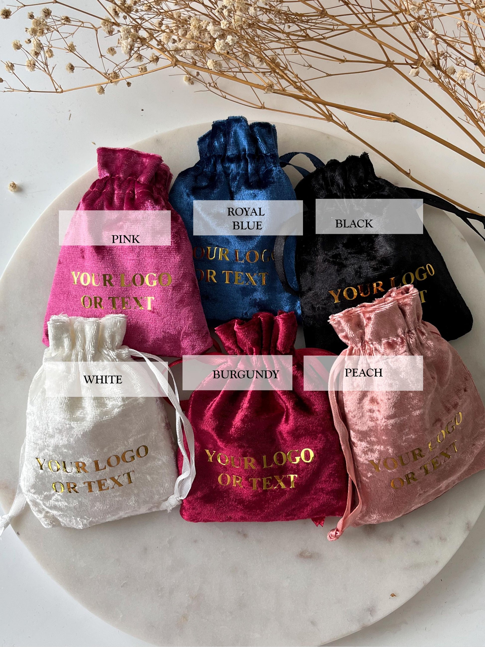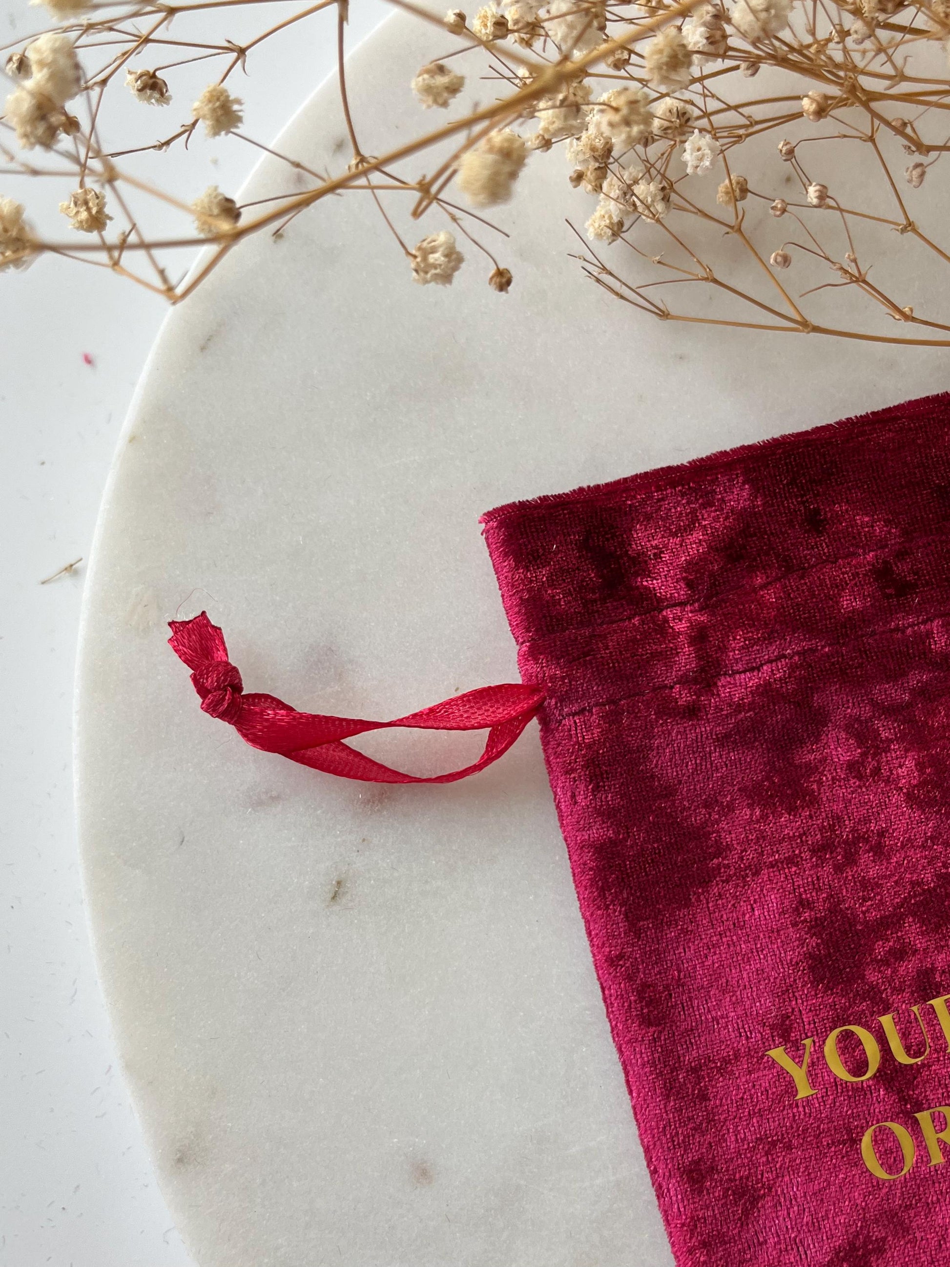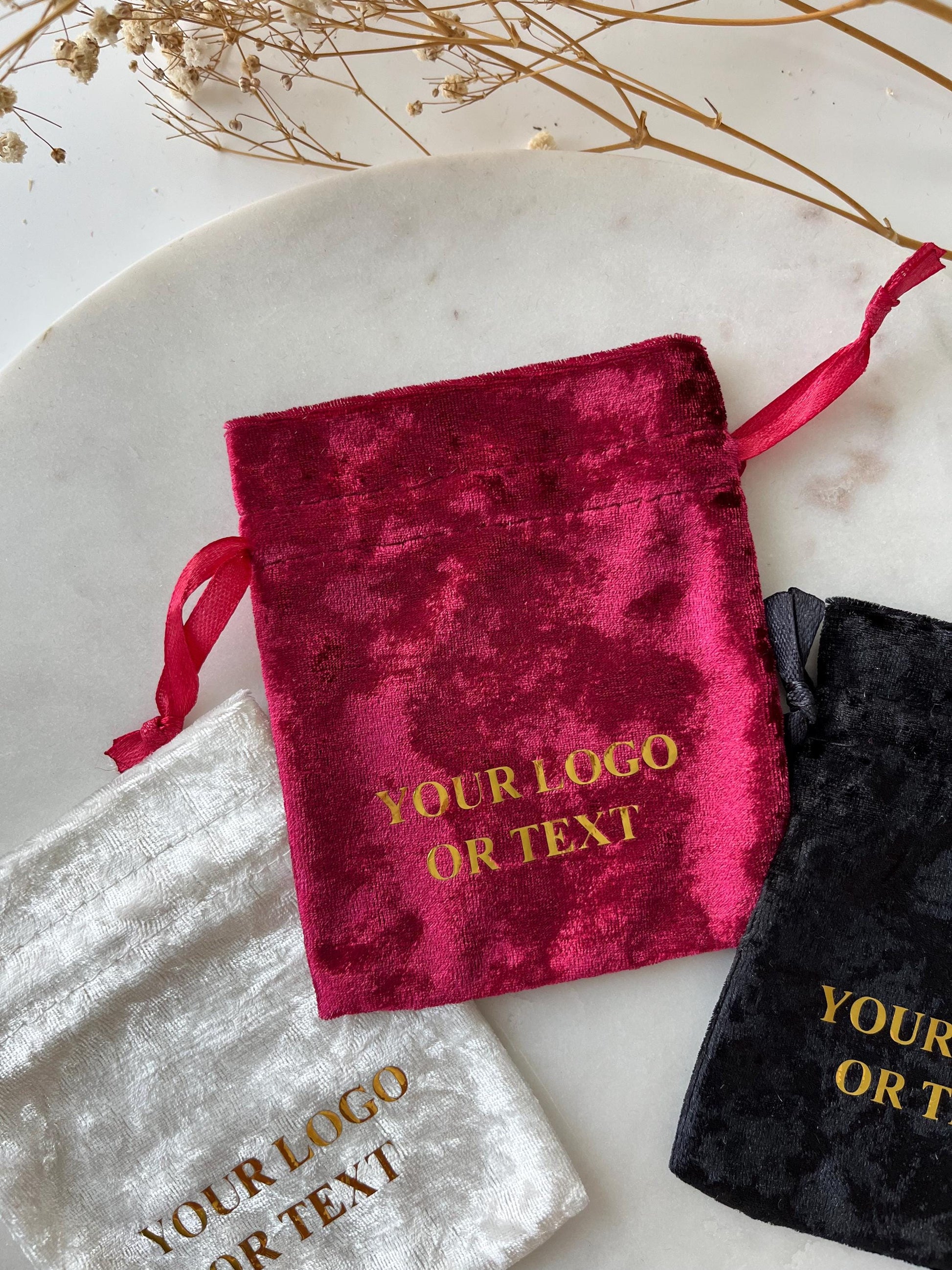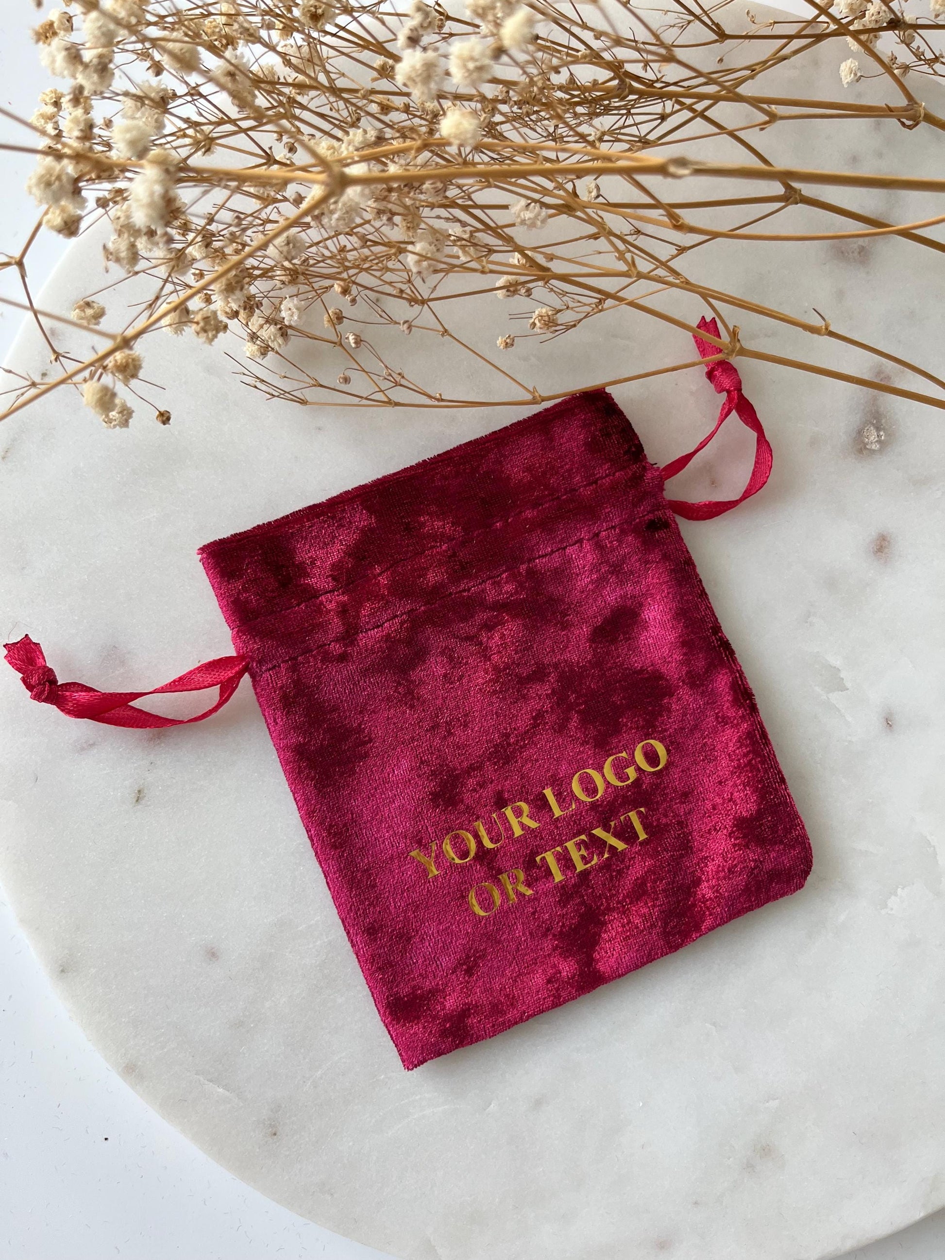 50 Burgundy Velvet Drawstring Bags 4x5 inch: Custom Logo Gift Pouches