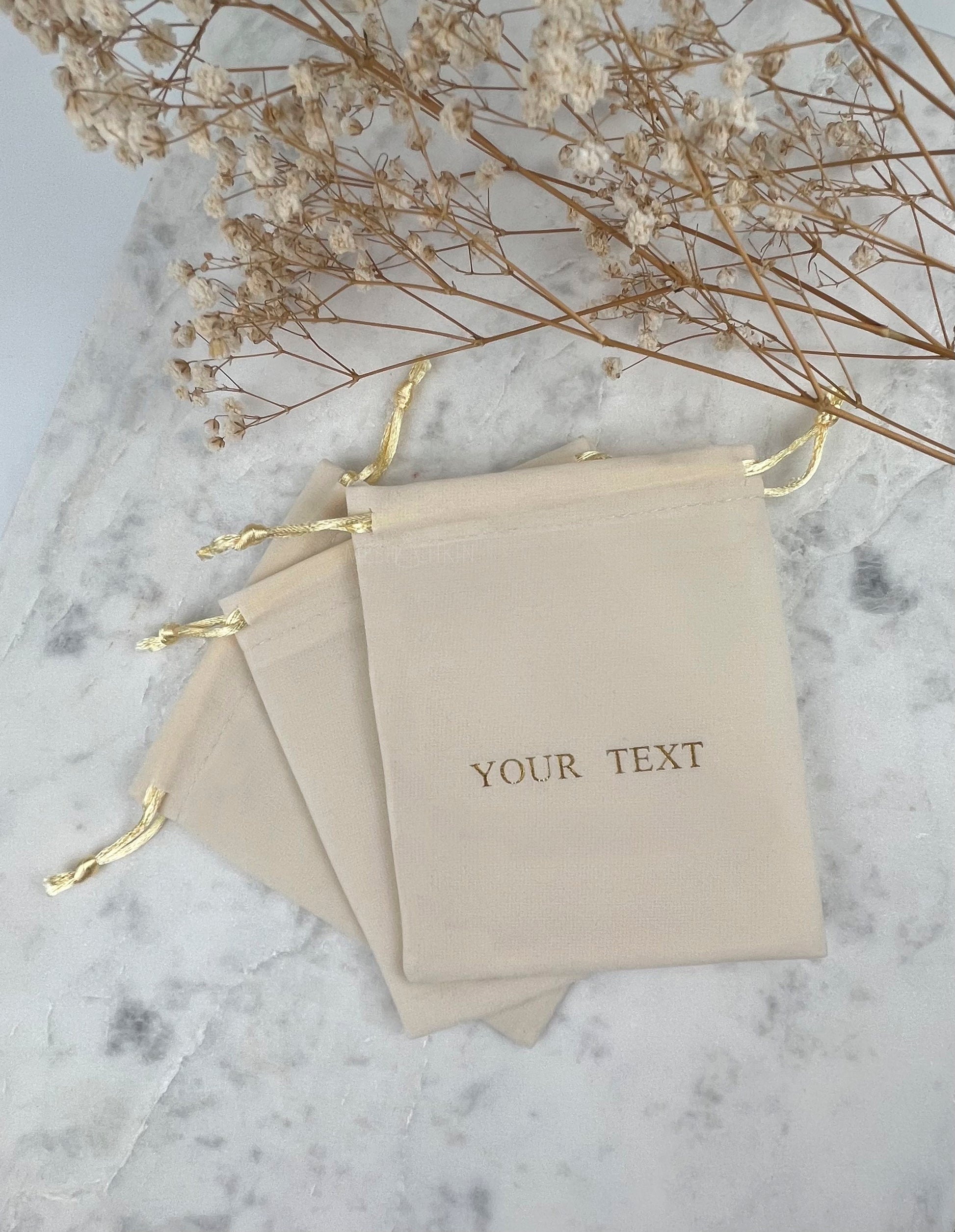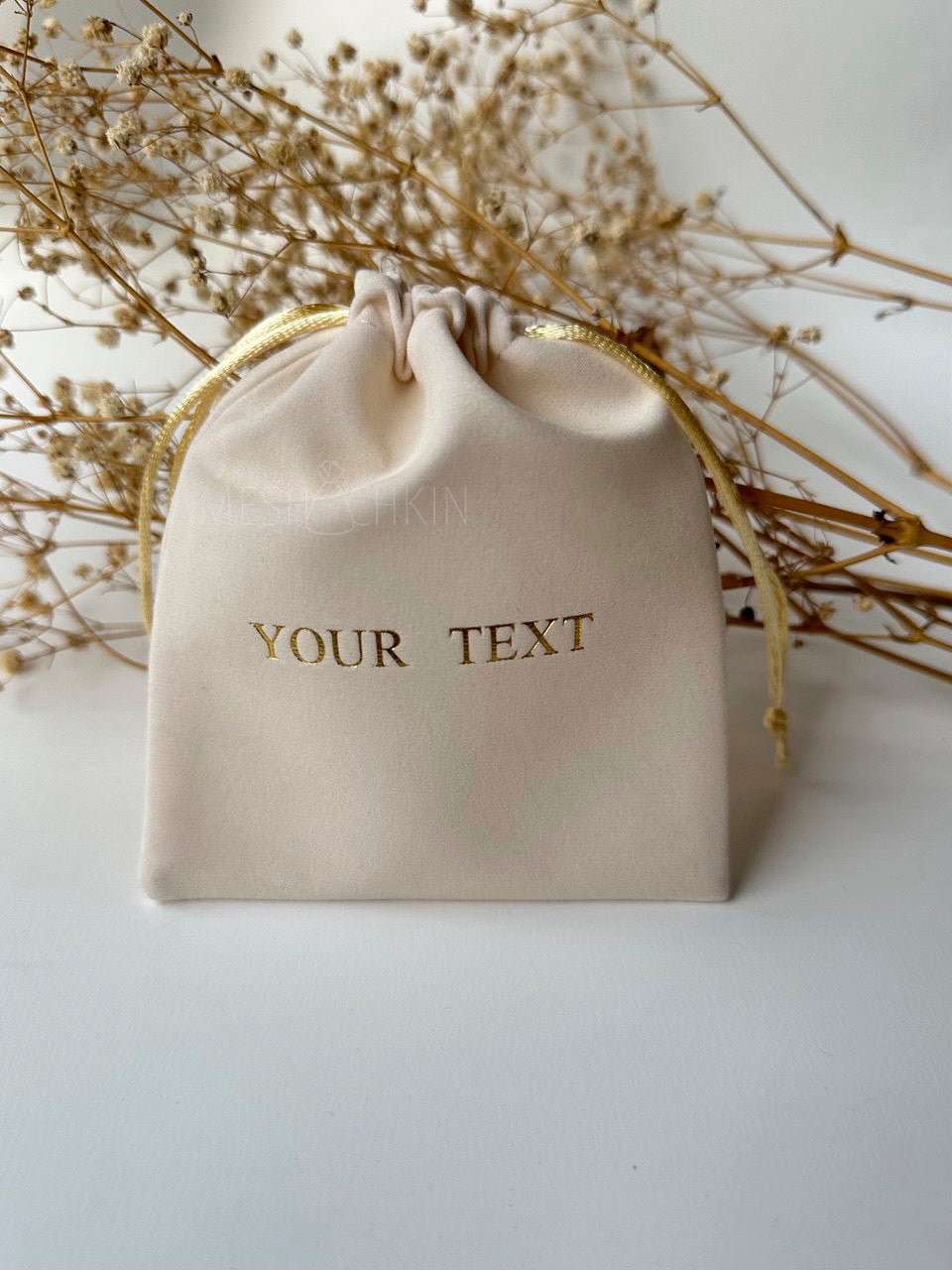 50 pcs 4x5 in Beige Velvet Custom Text Jewelry Bags: Personalized Drawstring Pouch