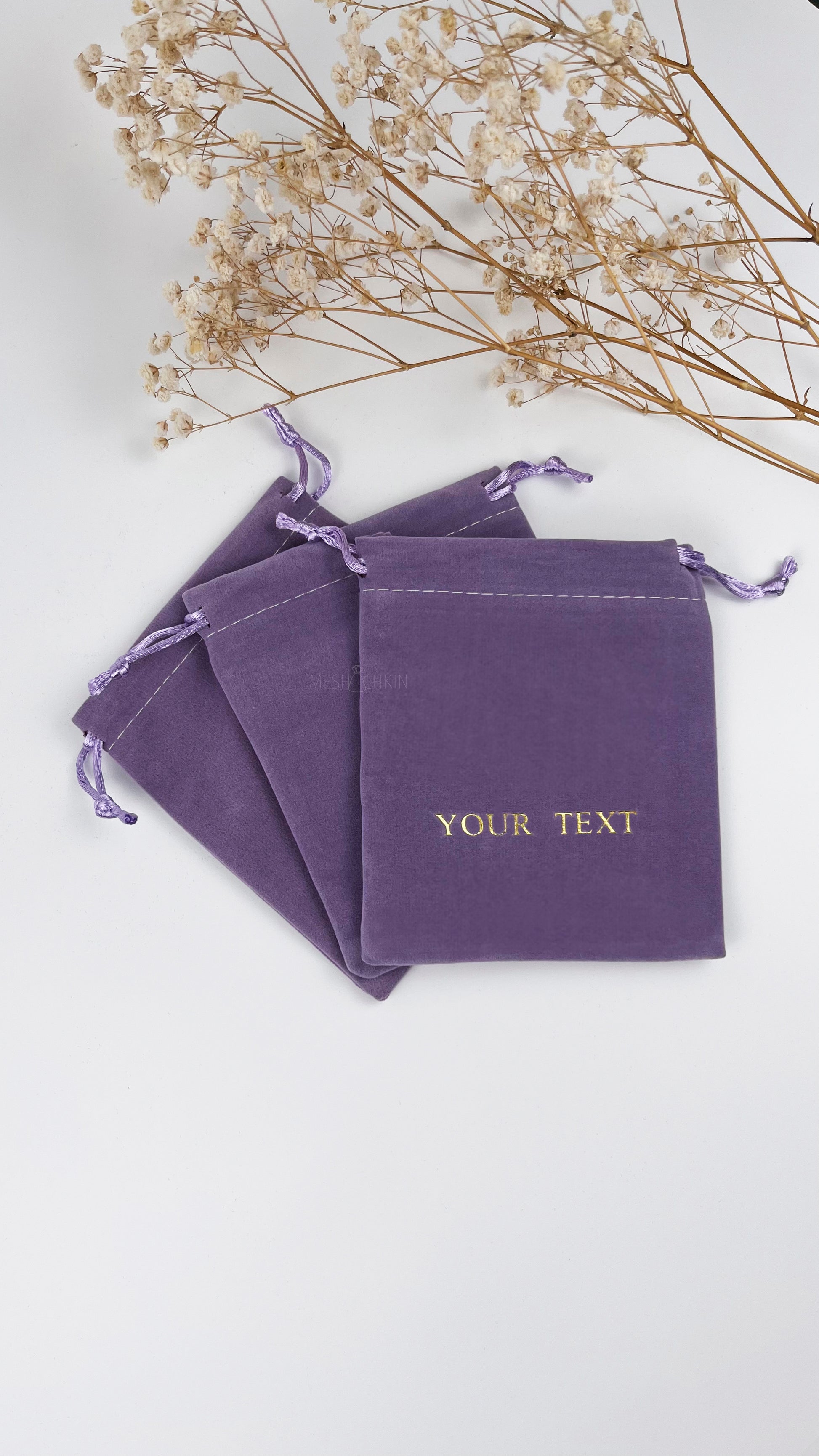 50 pcs 4x5 in Lavender Velvet Custom Text Jewelry Bags: Personalized Drawstring Pouch