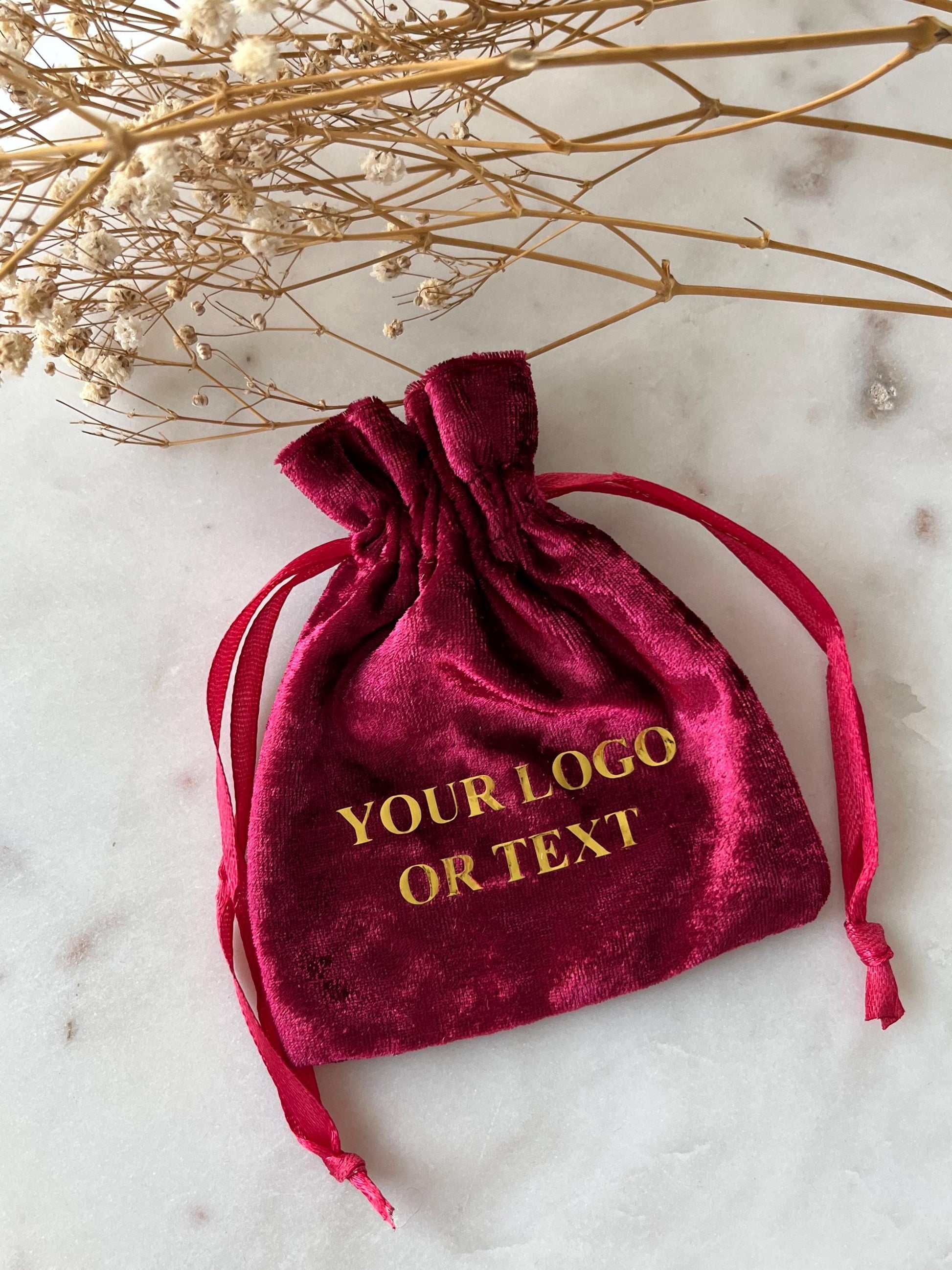 50 pcs Custom Logo Velvet Pouches, 4x5 inch Black Pouches , Custom Text Gift Bags, Wedding Gift Mini Bags, Burgundy Drawstring Bag