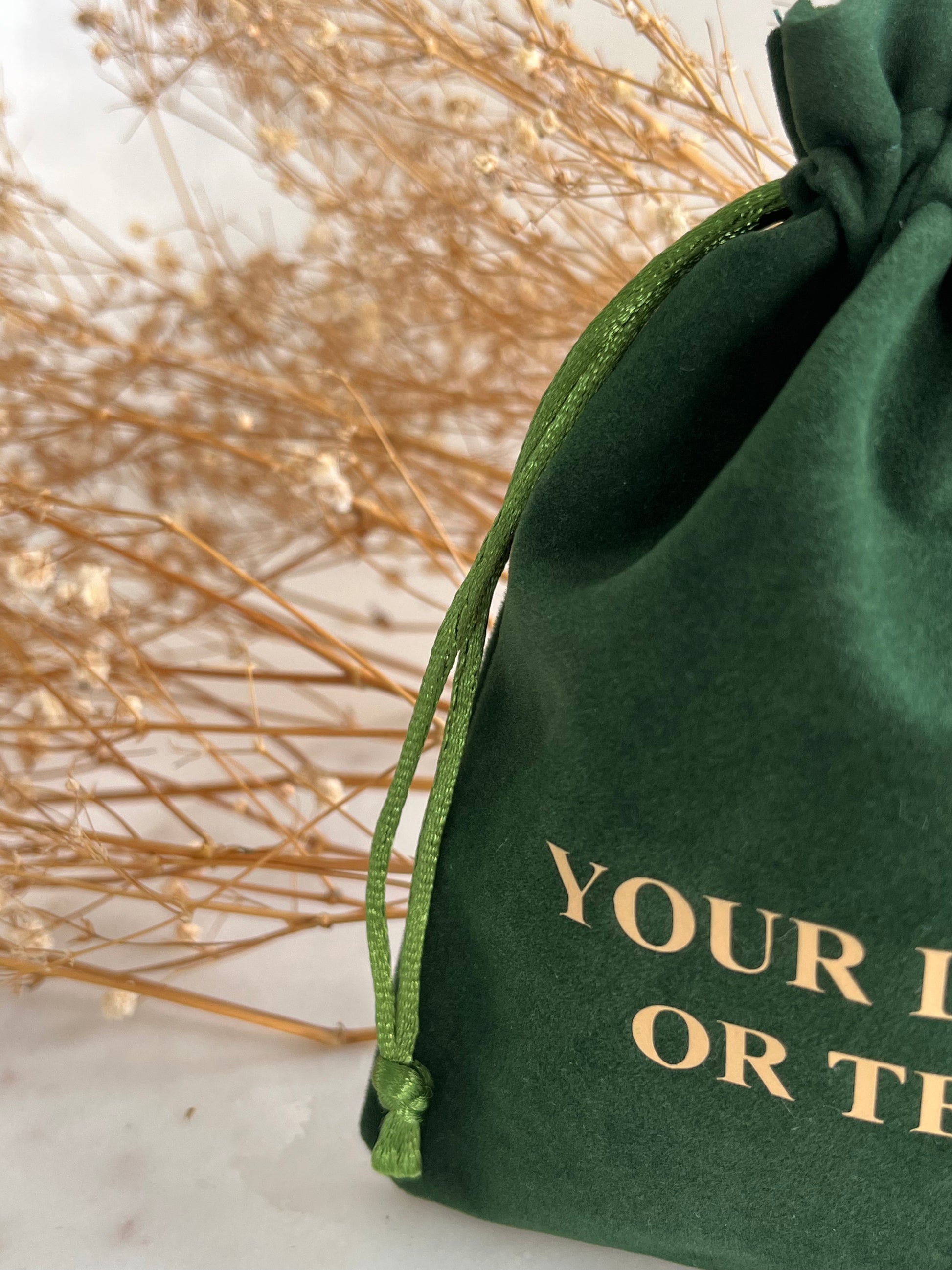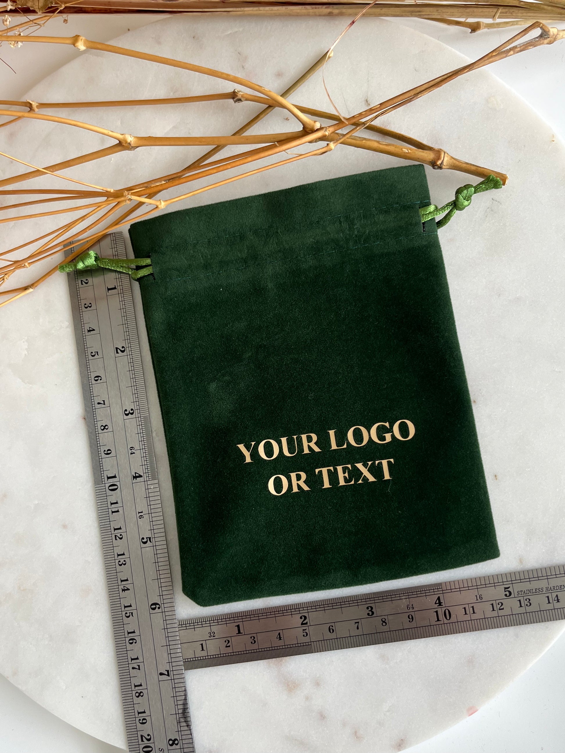 5x6 in 50 pcs Green Velvet Pouches, Velvet Pouches , Wedding Favor, Jewelry Gift Bags, Custom Text Mini Bags, Custom Logo Drawstring Bag